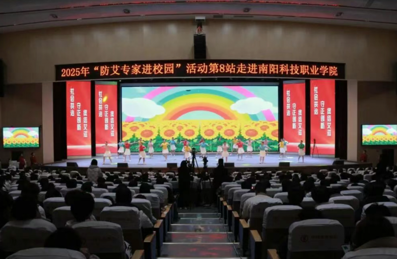 12月2日下午,星海艺术中心内青春涌动,2025年“防艾专家进校园”活动第8站走进南阳科技职业学院。本次活动由河南省卫健委、河南省疾控局主办,河南省疾病预防控制中心 医药卫生报社、南阳科技职业学院承办。学校党委委员、副校长刘彦出席活动,相关部门负责人及师生代表共700余人参加。本次活动采用线上+线下的方式进行,共同见证这场融合知识科普与艺术表达的防艾盛会。