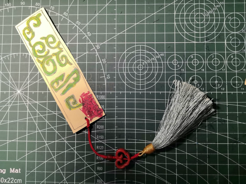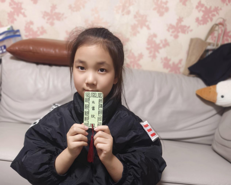 当所有书签完成,学生有的把书签夹进课本,有的举起来对着阳光看纹样的影子。而更多学生盯着书签上的云雷纹,小声说:“原来商代的花纹这么好看,现在它能陪我们读书了。”这堂劳动课上,学生不仅学会了裁剪、绘制、过塑的技能,更把古老的文化符号,变成了握在手里、用在日常的劳动成果——那些藏在纹样里的故事,从此便跟着书签,走进了每一页翻开的书里。把古老的故事,悄悄藏进了书页的褶皱里。