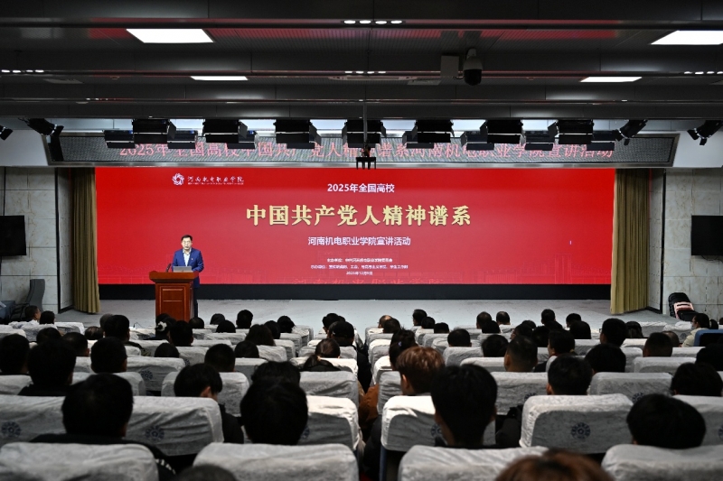 12月9日,2025年全国高校“中国共产党人精神谱系”河南机电职业学院宣讲活动在学校图文中心报告厅顺利举行。活动特邀全国劳动模范、大国工匠、中信重工电炉班班长杨金安走进校园,为河南机电师生带来精彩宣讲。学校领导班子成员,有关职能部门负责人以及各二级学院书记、副书记、各工会小组组长、辅导员和思政课教师代表、学生代表等300余人参加活动。