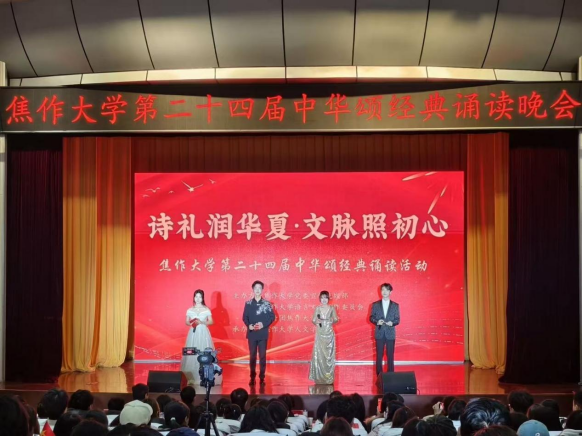 12月5日,焦作大学第二十四届中华颂“诗礼润华夏·文脉照初心”活动在南校区学术报告厅举行。本次活动由焦作大学党委宣传统战部、共青团焦作大学委员会、焦作大学语言文字工作委员会主办,人文学院承办。