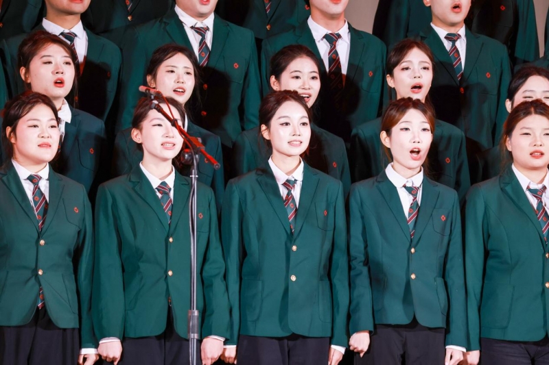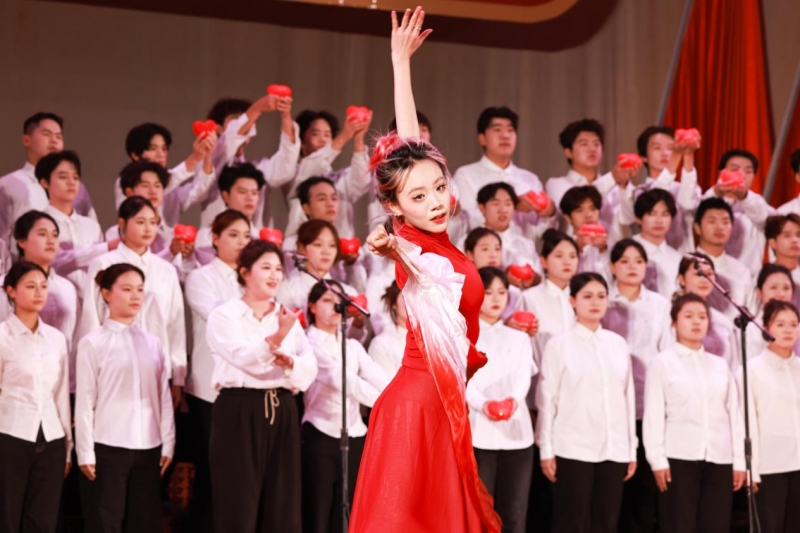 从革命岁月走来,奋斗精神代代相传。第二篇章“奋斗礼赞·敬时代脊梁”接续登场。会计学院《我们走在大路上》昂扬向上,抒发逐梦豪情;艺术学院《我和我的祖国》温情脉脉,诠释家国赤诚;管理学院《灯火里的中国》温润动人,勾勒盛世图景;文传学院《祖国不会忘记》质朴深沉,致敬无名建设者,赢得全场掌声。