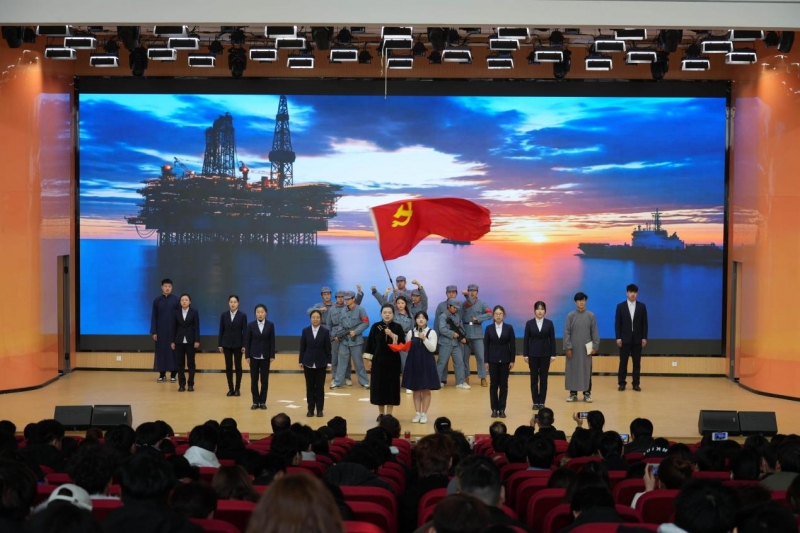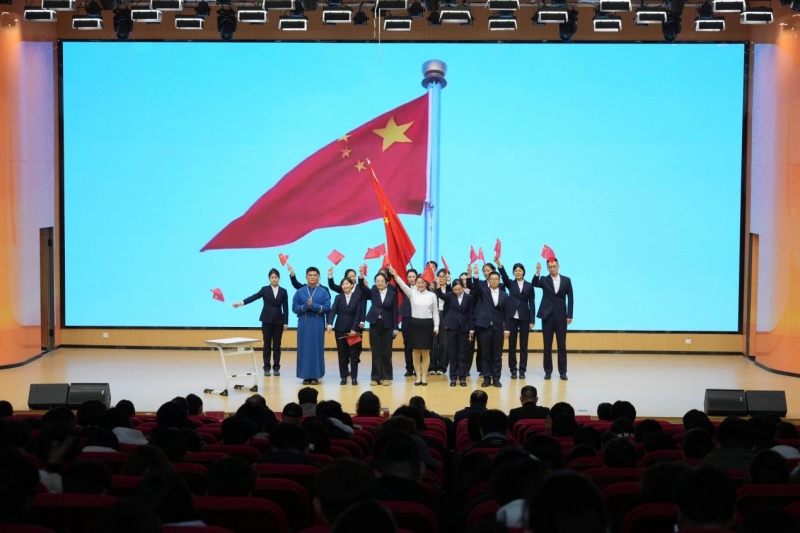 决赛现场,智能工程学院学生的《舞龙舞狮》表演拉开帷幕。各参赛队伍通过脱稿诵读、情景再现等形式演绎经典,《一束明亮的光》《红船载梦山河如愿》等作品深情回顾党的奋斗历程。《南京南京》以震撼人心的叙事唤醒历史记忆,而《可爱的中国》联袂展演则从多维度诠释家国情怀。艺术传媒学院党支部的《红铁》通过舞台剧形式展现革命精神,智能工程学院的《青春跟党走》彰显青年担当。