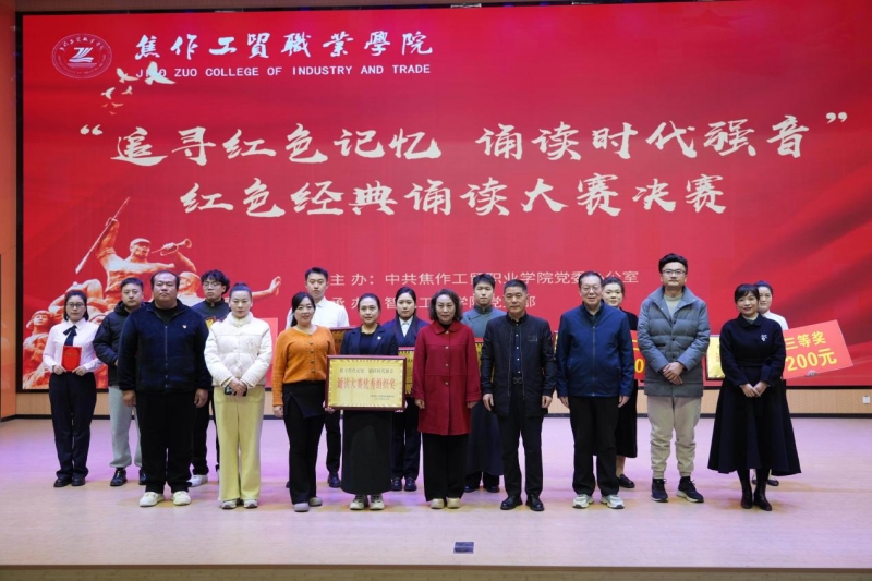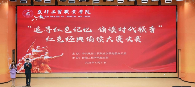 12月11日下午,焦作工贸职业学院“追寻红色记忆 诵读时代强音”红色经典诵读大赛决赛在山阳校区图书馆报告厅圆满落幕。本次大赛由校党委办公室主办,智能工程学院党支部承办,历时20天,吸引全校15个基层党支部参与,最终7支队伍晋级决赛。