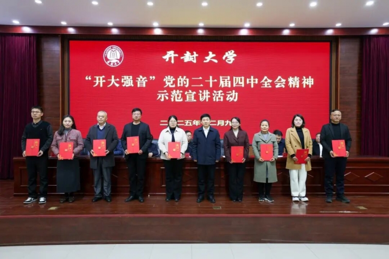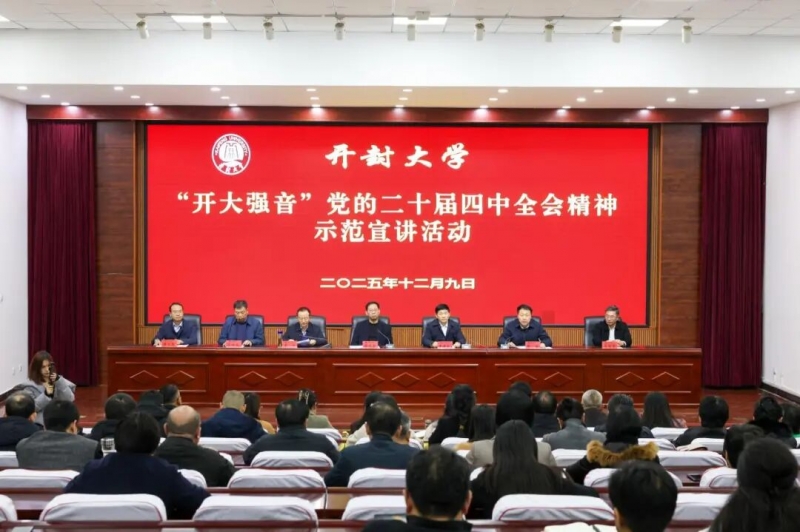 全体校领导班子成员、中层正职干部、开封大学“开大强音”党的二十届四中全会精神宣讲团成员、马克思主义学院教师、“明德学院”第五期青马班学员及学生代表200余人参加会议。