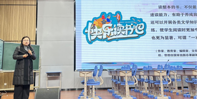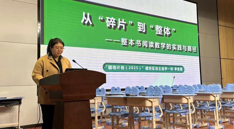 “整本书阅读”主题交流聚焦学生阅读能力与核心素养培养。一班指导团队的李昱慧老师带来《从“碎片”到“整体”:整本书阅读的实践与路径》专题分享,将语文学习任务群比作“盖房子”,生动解读了整本书阅读作为多文本教学升级形式的必要性,强调其落实完整性、过程性、交流性、探究性四大关键词,在能力培养、心灵滋养等方面具有深远价值。