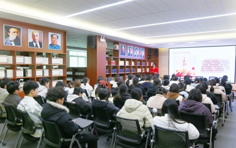 12月11日下午,河南牧业经济学院英才校区图书馆社会主义文库报告厅内座无虚席、气氛庄重而热烈。河南牧业经济学院“中国共产党人精神谱系”专题宣讲报告会在此举办。河南牧业经济学院马克思主义学院中国近现代史纲要教研室主任张燕妮以《汲取百年精神伟力 擘画未来发展蓝图》为题作宣讲报告。河南牧业经济学院全校各班级以主题团课形式,通过网络直播同步收看学习。报告会由河南牧业经济学院党委宣传部副部长李特主持。