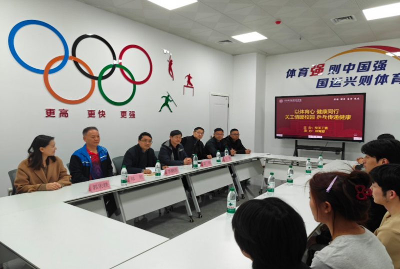 11月25日,“五老进校园”系列活动正式拉开帷幕。花明、王黎、郑胜等退休校领导走进学校体育部,举行“关工情暖校园 乒乓传递健康”座谈会,并对学校乒乓球社团的青年学生进行体育教学指导,耐心传授发球技巧、攻防战术。校党委副书记李鹏涛出席活动。