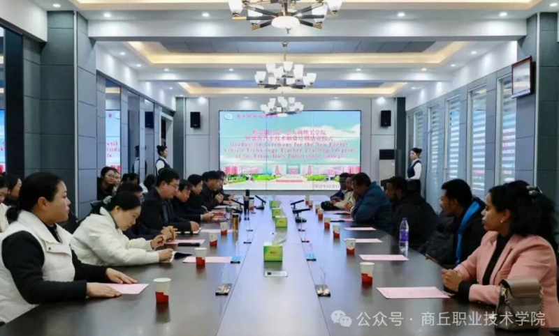12月12日上午,商丘职业技术学院在明德楼第二会议室举办埃塞俄比亚-意大利理工学院教师师资培训结业仪式。学校党委书记、校长薛明志、党委委员、副校长李春、河南联非商务信息咨询有限公司项目主管郑利、以及埃塞俄比亚学员阿贝·凯贝德等8名参训学员出席。仪式由李春主持,校长办公室、国际交流处、交通学院相关负责人参加。