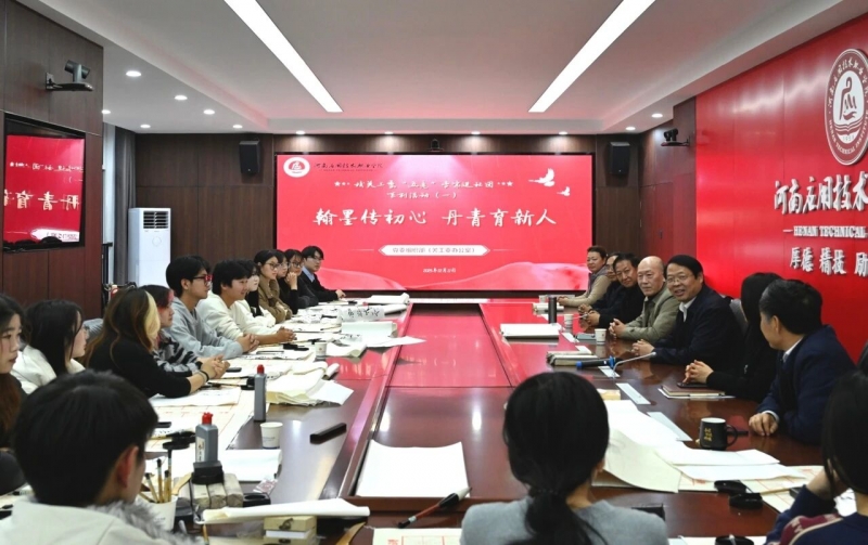 12月11日下午,河南应用技术职业学院在开封校区(北院)举办“翰墨传初心 丹青育新人——‘五老’专家进社团”活动。党委书记、关工委主任闫俊山出席活动,徐锐、韩宝来、赵剑涛三位退休书法专家以及书画社团师生代表共同参与。活动由党委组织部部长(关工委办公室主任)崔咏梅主持。