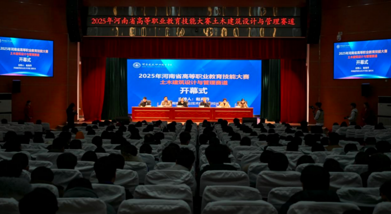 12月15日,2025年河南省高等职业教育技能大赛土木建筑设计与管理赛道比赛在河南建筑职业技术学院开幕。河南省教育厅职业教育与成人教育处副处长任远,河南建筑职业技术学院党委副书记、校长焦涛出席开幕式并致辞。开幕式由副校长赵肖丹主持。来自全省49所职业院校的49支参赛队伍,受邀出席的仲裁、监督、裁判共计近300人参加此次开幕式。
