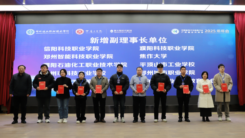 近日,河南省电子与信息行业产教融合共同体2025年年会在郑州铁路职业技术学院顺利召开。会上,郑州智能科技职业学院当选为“河南省电子与信息行业产教融合共同体副理事长单位”。