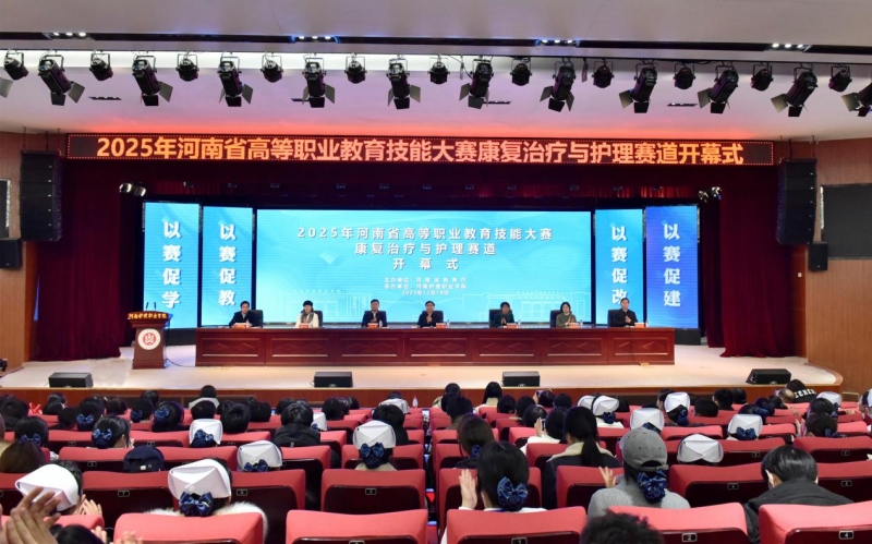 12月18日下午,由河南省教育厅主办、河南护理职业学院承办的2025年河南省高等职业教育技能大赛康复治疗与护理赛道开幕式在河南护理职业学院学术报告厅成功举行。河南省教育厅党组成员、副厅长、一级巡视员吕冰,河南省教育厅职成教处副处长张俊丽,安阳市人民政府副市长常慧芹,河南护理职业学院党委书记、院长胡仕坤,党委副书记、工会主席钟会亮出席开幕式,来自全省29支参赛队的领队、指导教师及参赛选手参加仪式。开幕式由副院长黄敬堂主持。