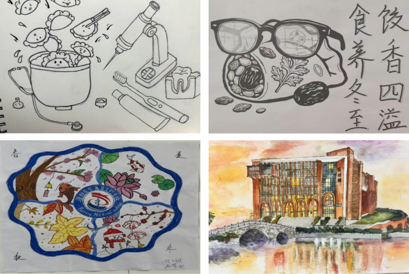 当艺术创意遇上医学专业,碰撞出独具特色的文化火花。医学技术学院发起“绘冬至雅韵,融医学匠心”创意绘画活动,同学们巧妙地将专业元素融入画卷。《齿暖冬至》生动展现口腔健康关怀,《食养冬至,饺香四溢》则将养生知识可视化,《医苑四季韶光》《红墙映晚辉》等一幅幅作品,描绘了校园冬景,同学们用五彩画笔和翰墨丹青,将节日祝福与专业理解倾注于创作之中,实现了美育与专业教育的有机融合。