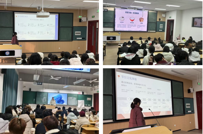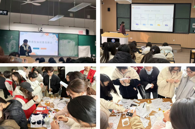 各学院紧密结合学科特色,将冬至文化活动打造为专业实践的生动课堂。公共卫生学院充分发挥专业优势,组织各班开展“温馨冬至·健康同行”主题班会,辅导员们深入讲解冬季疾病预防、科学膳食搭配及防寒保暖知识,将专业的公共卫生理念转化为通俗易懂的养生指南。医学技术学院的“医暖冬至·艺趣同行”活动则别出心裁,师生共同制作蕴含健康知识的“养生饺子”手工作品,并配套“冬日养生科普小卡片”,在趣味互动中普及了冬季进补、护眼等实用知识,真正做到了“以文化人,以知促行”。