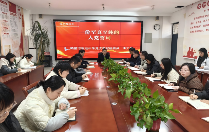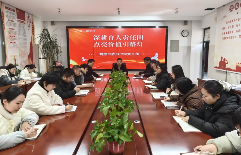 11月25日,鹤壁市致远中学党支部举办“深耕育人责任田 点亮价值引路灯”主题党日暨组织生活会,全体党员教师参加。