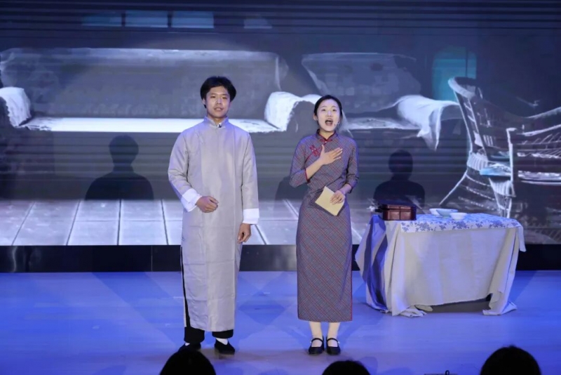 随后,“延续红色血脉,勇担时代使命”主题红色话剧文艺汇演正式拉开帷幕。灯光渐暗,光影交错,三段峥嵘岁月的历史画卷徐徐展开。《寻光》讲述了在风雨如晦的旧中国,一群心怀理想的青年在迷茫中艰难求索,最终坚定信仰、投身革命洪流的感人故事,深刻诠释了何为初心与使命;《永不消逝的电波》将隐蔽战线的生死较量搬上舞台,演员们用极具张力的表演,再现了革命者李侠与战友们在危机四伏中坚守信仰、为民族解放甘洒热血的崇高精神,令台下观众无不动容;原创话剧《当归》则以吴石将军的故事为蓝本,细腻刻画了在时代洪流中,个人命运与国家前途之间的深刻联结,主人公对家国的眷恋与抉择折射出中华儿女血脉中流淌的忠诚与担当,令人潸然泪下。这场汇演不仅是一次成功的艺术实践,更是一堂鲜活生动的党史学习教育课,让红色基因在润物无声中变得可感、可知、可传承。