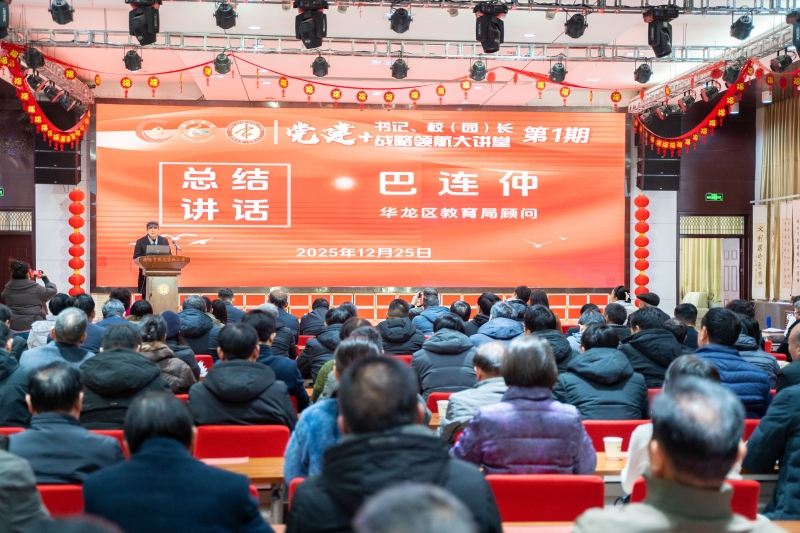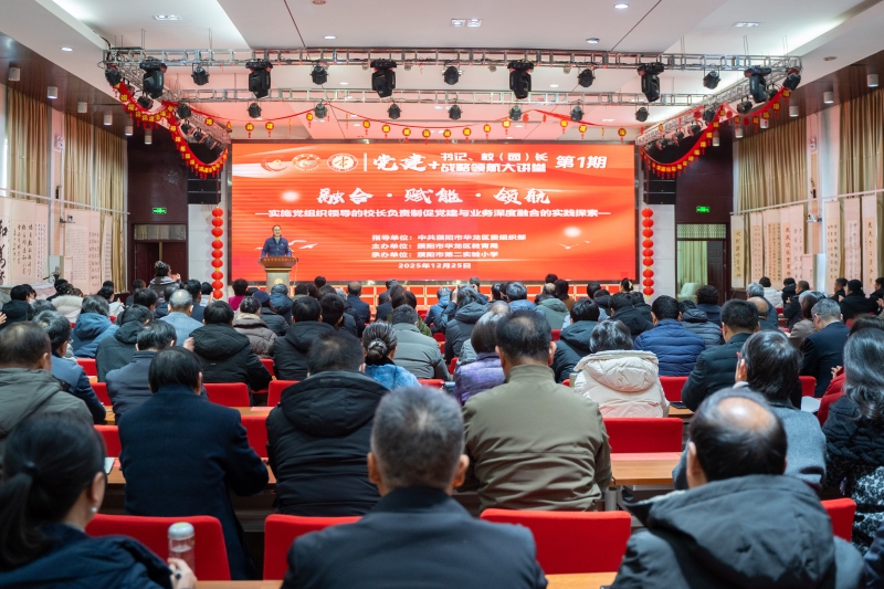 为深入贯彻落实新时代党的建设总要求,牢牢把握社会主义办学方向,推动党建与教育工作深度融合,12月25日上午,濮阳市华龙区教育系统第1期“党建+”战略领航大讲堂在濮阳市第二实验小学成功举办。本期讲堂以“融合·赋能·领航:党组织领导的校长负责制下党建与业务深度融合的实践探索”为主题,旨在通过思想碰撞与经验共享,凝聚共识、深化融合,为华龙教育高质量发展注入澎湃的“红色动能”。