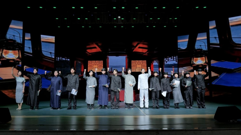 汇演在灵动的群舞《心河》中缓缓启幕,仿佛一条流淌着理想与信念的母亲河,将观众带入那段热血沸腾的历史。整场演出以党史为主线,分为三个篇章。