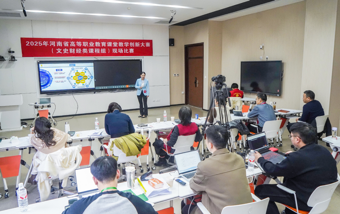 2025年河南省高等职业教育课堂教学创新大赛由河南省教育厅主办,旨在全面提升全体教师教学创新能力,推动日常课堂教学模式创新,提升人才培养质量。比赛为共设公共基础课程组、理工农医类课程组、文史财经类课程组3个组别。其中文史财经类课程组现场竞赛由洛阳职业技术学院承办,比赛期3天,共有来自全省95所职业院校178名教师参赛。比赛分为说课、无学生教学展示和答辩三个环节,参赛教师在规定时间内完成分别完成参赛课程设计思路与实施路径阐明、具体教学节段现场教学、即时解答评委提问等。
