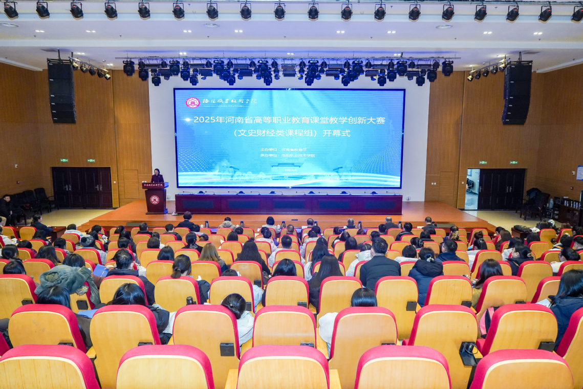12月23日,2025年河南省高等职业教育课堂教学创新大赛(文史财经类课程组)比赛在洛阳职业技术学院开赛。河南省教育厅职成教处副处长张俊丽致辞,洛阳职业技术学院校长李保安致辞并宣布开幕。