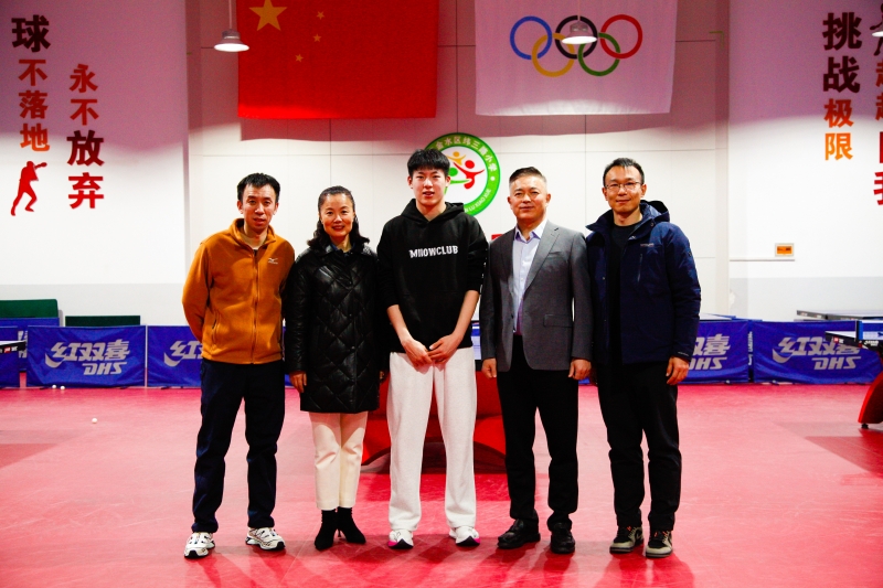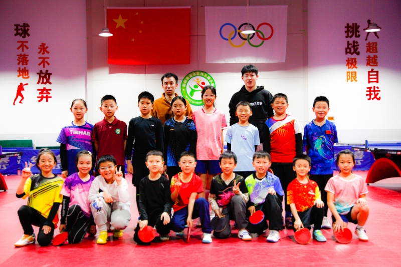 活动最后,温瑞博与学校乒乓球队全体队员、教练及老师们合影留念,鼓励队员在乒乓球运动中不断突破自我,追逐更高的目标。