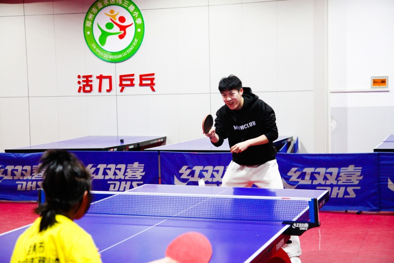 2025年12月25日下午,第十五届全国运动会乒乓球男子18岁以下单打冠军、河南队小将温瑞博走进郑州市金水区纬三路小学,与学校乒乓球队队员们开展交流指导活动。