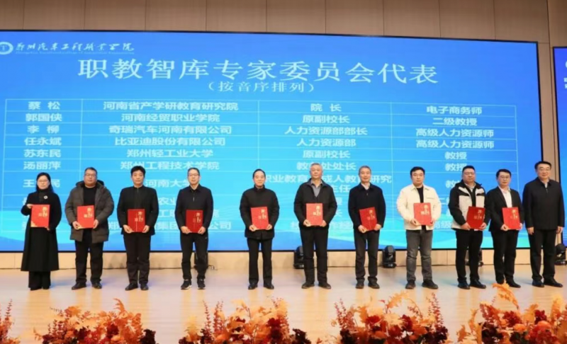 郑州市职业教育研究院院长薛培军为研究院副院长及首批智库专家颁发聘书。