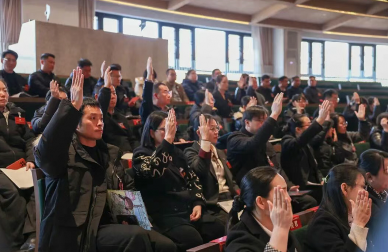 工会副主席丁雅荣以《勠力同心聚合力,奋楫扬帆启新程》为题作工会工作报告,从思想引领、民主管理、暖心帮扶、教工之家、成长平台、文体活动等六方面回顾2025年工会工作,全年立案提案4件、办结3件。她表示,2026年将升级“暖心工程”、深化闭环提案、打造“减压沙龙”,持续做优“娘家人”品牌。