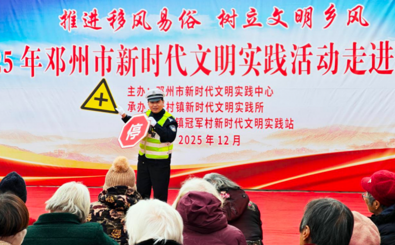 12月26日,在河南工业大学定点帮扶单位邓州市张村镇冠军村的新时代文明实践站热闹非凡,一场以“推进移风易俗 树立文明乡风”为主题的新时代文明实践活动在这里举办。此次活动整合了邓州市人民法院、市公安局、医保局等多方资源,为村民送上了一场集普法教育、政策宣讲、文艺展演和便民服务于一体的“暖心大礼包”,旨在传播文明理念,助力乡村振兴。