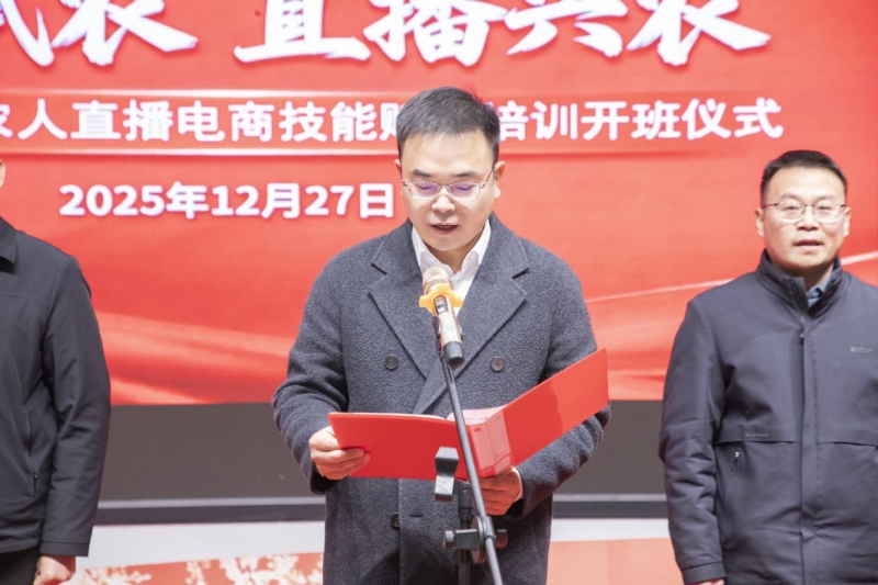 仪式上,石道乡乡长于利营充分肯定了学校为登封乡村发展提供的智力支持与人才助力。于乡长指出,发展直播电商是促进本地特色农产品上行、拓宽农民增收渠道、激发乡村内生动力的有效路径。他对参训学员寄予厚望,鼓励大家珍惜机会,学以致用,并期待未来政校双方能够持续深化合作,共绘乡村发展新蓝图。