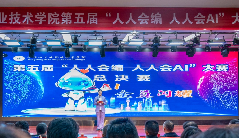 改革创新强内涵,特色育人结硕果。12月27日上午,平顶山工业职业技术学院第五届“人人会编 人人会AI”大赛总决赛暨成果展示在该校2号教学楼701报告厅举办。副校长张立方出席,学校各院部、相关处室负责人及师生代表500余人参加。