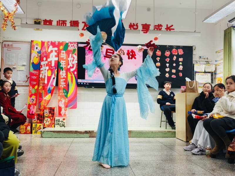 12月31日,全校迎来“迎新年”班级美育活动的高潮。各班教室化为欢乐的舞台,歌曲、舞蹈、器乐、朗诵、小品等节目轮番登场,同学们踊跃参与,尽情展示个人才艺和团队创意。学校领导也深入各班,为同学们送上新年的祝福与鼓励。现场气氛热烈祥和,欢声笑语不断,大家在艺术的感染中共同迎接充满希望的新一年。