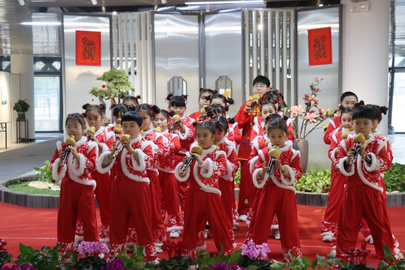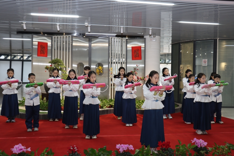动态展演环节精彩纷呈。啦啦操社团活力开场,尽显少年朝气;民乐合奏《春节序曲》悠扬婉转,传递喜庆团圆;朗诵《七子之歌》《满江红》抒发家国情怀与少年壮志;戏曲独唱、葫芦丝演奏、口风琴联奏轮番登场,在艺术展示中厚植文化自信,将思政元素融入艺术表达。