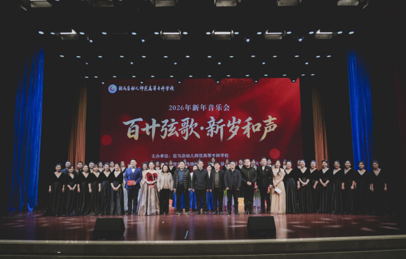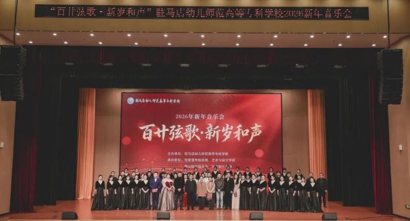 岁序更替,华章日新。2025年12月29日、30日晚,驻马店幼儿师范高等专科学校“百廿弦歌·新岁和声”2026年新年音乐会分别在秀山校区、盘龙校区隆重上演。驻马店市直工委书记王红卫,市人大常委会教科文卫工委书记贾振峰,市政协教科卫体委员会主任李金光,确山县人民政府副县长王巧雨等领导,相关单位负责人、企业代表受邀出席;学校党委副书记、校长李柯出席活动并致辞,校领导班子成员、师生代表及社会各界嘉宾欢聚一堂,在悠扬旋律中共迎新年的到来。