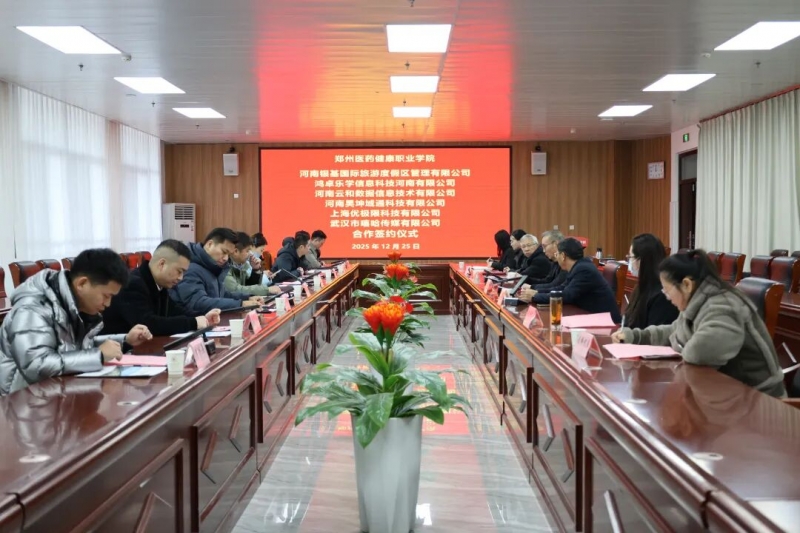 近日,郑州医药健康职业学院在郑医学习大楼F101会议室举办校企合作集中签约仪式。河南银基国际旅游度假区管理有限公司、鸿卓乐学信息科技河南有限公司、河南云和数据信息技术有限公司、河南昊坤域通科技有限公司、上海优极限科技有限公司、武汉市嘻哈传媒有限公司等六家企业代表与学校代表参加仪式。