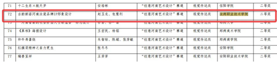 学校对此次比赛高度重视,参赛师生积极投入,所提交作品涉及文化与形象IP设计等多个方向,在此次比赛中我校师生获得二等奖1项、优秀奖4项。其中,赵玉龙、包慧利创作《古韵新姿河南汝瓷品牌IP形象设计》获得教师组二等奖;由教师韩帅指导马路瑶、郝会彤创作的《河南栾川城市万象IP形象设计》,教师包慧利指导邹英杰创作的《遇见河南主题文创IP形象设计》,教师王子琪指导张波创作的《“中原豫彩”河南豫剧文创IP设计》,教师刘芳芳指导翟乐乐、林楠楠创作的《河南开封美食灌汤包IP形象设计》分获学生组优秀奖。
