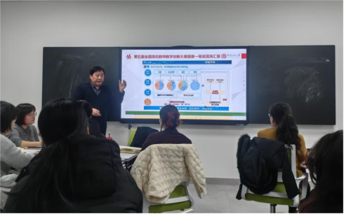 在交流环节,2025年度省级课堂教学创新大赛一等奖获得者陈红芝、徐梓滢,以及河南省教学技能大赛一等奖获得者李珅珅、徐梓滢,分别分享了各自的备赛历程、创新做法与经验心得。教务处常务副处长王秀鸽从赛事组织与教师发展角度,回顾了上届参赛教师在陈广文教授指导下取得的突出成绩,并勉励本届教师沉心钻研、深刻领会、积极实践,将培训精髓转化为教学实绩。