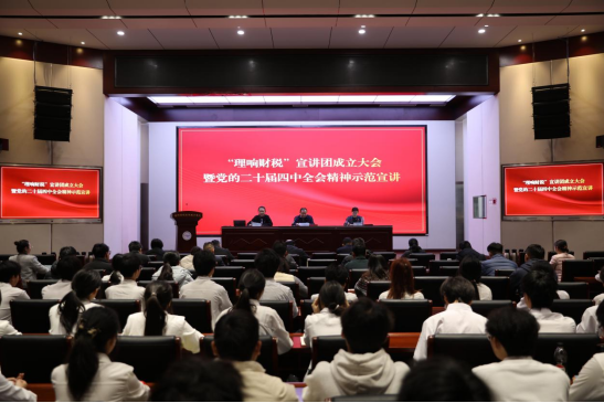 1月5日下午,郑州财税金融职业学院“理响财税”宣讲团成立大会暨党的二十届四中全会精神示范宣讲活动在厚德楼二楼报告厅举行。该校党委书记程慎、党委副书记董娣出席活动。宣传部、团委、马克思主义学院、各二级学院党总支书记、宣讲团成员、学生代表参加活动。
