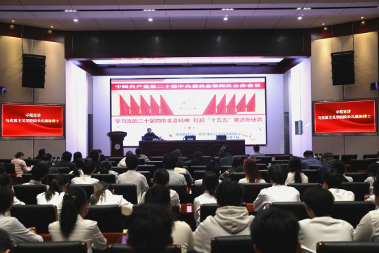 成立仪式后,马克思主义学院院长孔继海博士作了党的二十届四中全会精神示范宣讲。紧扣全会主题,系统阐释了我国制度优势、治理现代化目标任务与战略部署,内容深入浅出、逻辑清晰,为师生深刻领会全会精神提供了有效指导,也为宣讲团后续工作树立了鲜活样板。