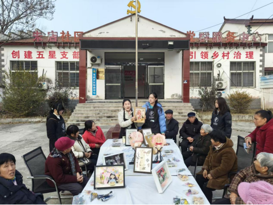 在许昌市鄢陵县大马镇的一间乡村活动室里,二十多位村民正围坐在长桌前,面前摆放着本地常见的腊梅、月季、菊花等干花、卡纸与画框,眼神却齐刷刷投向讲台前那位扎着马尾、笑容明朗的姑娘——许昌职业技术学院学生赵格瑶。