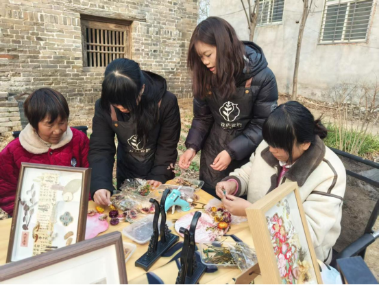 “我们发现,很多阿姨、奶奶手很巧,会剪贴、会搭配,但做的东西大多自家用,找不到市场。村里也有丰富的腊梅、月季、玫瑰等花卉资源,除了观赏和少量销售,很少被用来做深加工。”赵格瑶看准的,正是这个结合点:将现代装饰画创作理念和简单易学的手工技法带进来,帮村民把本地花材转化为具有艺术价值和文化意义的装饰画。