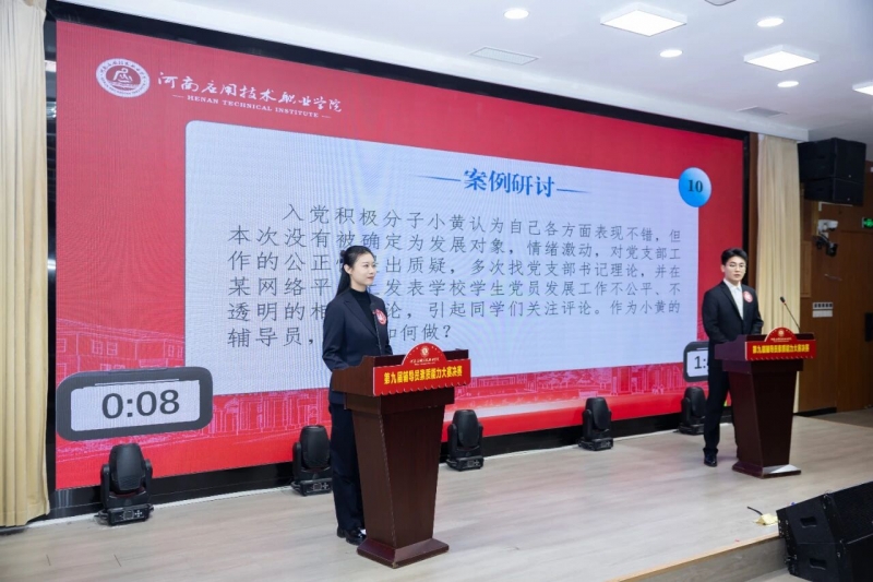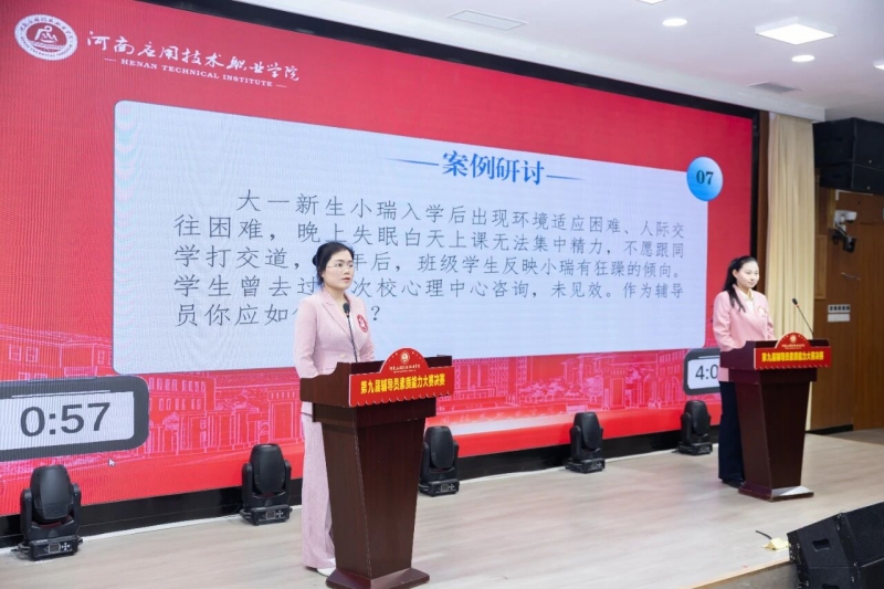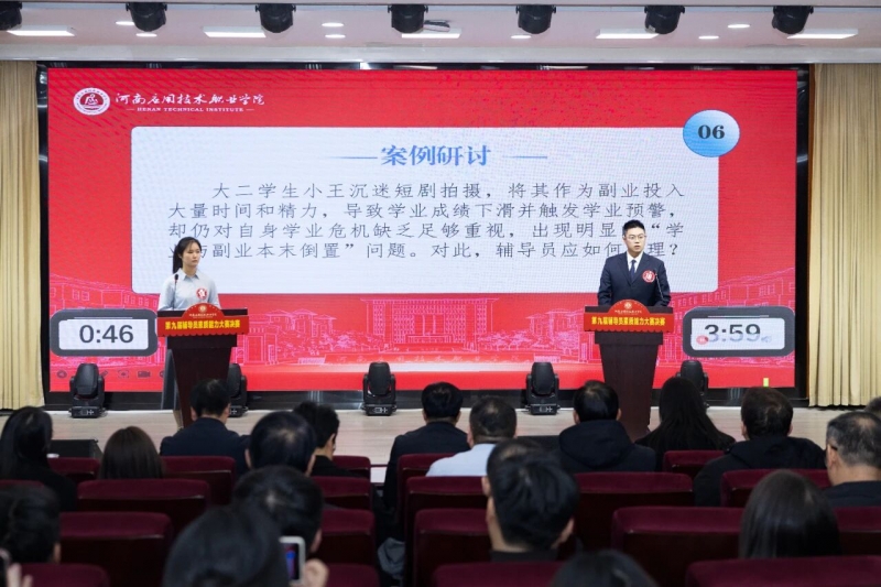 1月7日下午,河南应用技术职业学院第九届辅导员素质能力大赛决赛举办。校党委书记闫俊山、河南省教育厅思想政治工作处相关负责同志、副校长黄振中亲临指导,相关部门负责人,各二级学院党总支书记、副书记及全体专兼职辅导员到场观摩。