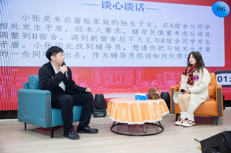 本次大赛特邀河南农业大学党委学生工作部部长徐峰、河南工业大学党委学生工作部部长王迪、郑州大学材料科学与工程学院党委副书记胡波、郑州轻工业大学党委学生工作部副部长王楠和华北水利水电大学智川书院党委副书记魏华等省内高校学生工作专家担任评委。经过各学院初赛、学校复赛的层层选拔,10名优秀辅导员脱颖而出晋级决赛。