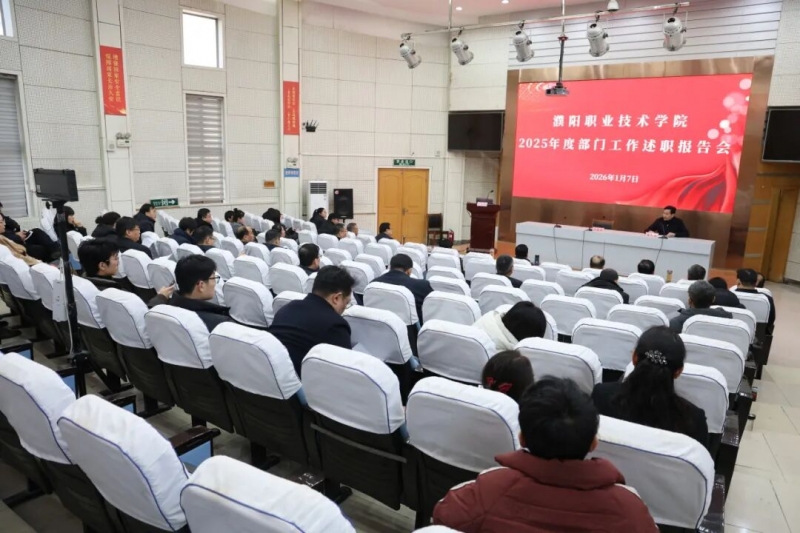 为全面总结2025年度学校各项工作成效,系统谋划2026年发展思路与重点任务,进一步凝聚共识、激发干劲,推动学校事业高质量发展,1月7日,濮阳职业技术学院在行政楼一楼报告厅召开年度工作述职汇报会。党委书记邓德华、校长孙爱丽及全体校领导出席会议。校属各单位负责同志参加会议。会议由副校长侯秀安主持。