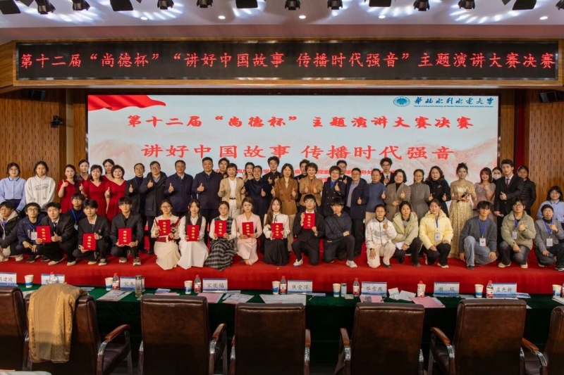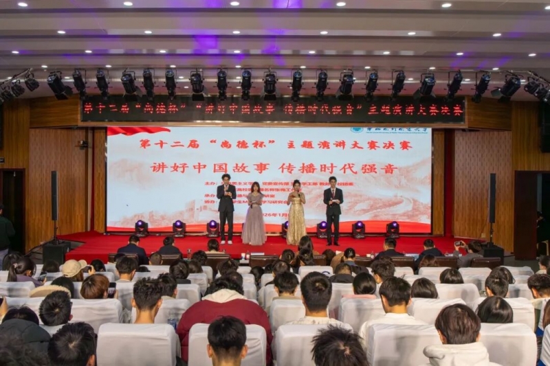 为推动思想政治理论课改革创新,不断增强思政课的思想性、理论性和亲和力、针对性,2026年1月8日下午,华北水利水电大学第十二届“尚德杯”“讲好中国故事 传播时代强音”主题演讲大赛决赛在龙子湖校区举办。本次比赛由马克思主义学院、党委宣传部、党委学工部、教务处、校团委,河南省高校思政课张梅名师工作室联合主办,思想道德与法治教研室承办,校大学生MMDX学习研究会协办。校党委副书记焦爱萍,副校长宋刚福,相关职能部门负责人、马克思主义学院领导班子及师生代表200余人共同见证了这场思政盛宴。