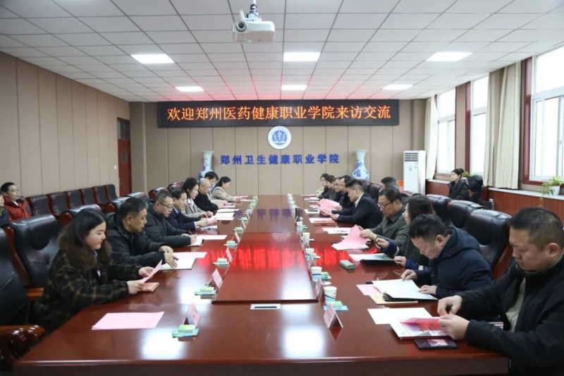1月14日,郑州医药健康职业学院院长王泽民率考察团一行赴郑州卫生健康职业学院开展专题考察交流。郑州卫生健康职业学院校长封银曼,党委副书记徐玉惠及相关部门负责人热情接待考察团,交流座谈会在郑州卫生健康职业学院会议室召开。