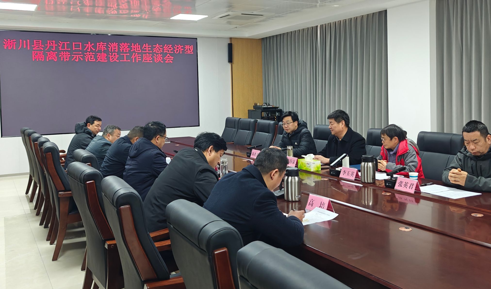 谢海泉介绍了学校的发展历史、学科特色以及长期服务地方经济社会发展的实践成果。他指出,学校一直以服务好南水北调国家水安全战略为己任,依托学校优势学科,持续为淅川县乃至丹江口库区生态保护提供科技和人才支撑。他表示,消落带是影响水源地水质安全的关键生态屏障,科学开展消落带保护与修复,对保障南水北调中线工程水质安全具有重要意义,学校将持续发挥科研优势,为相关工作提供系统支撑。