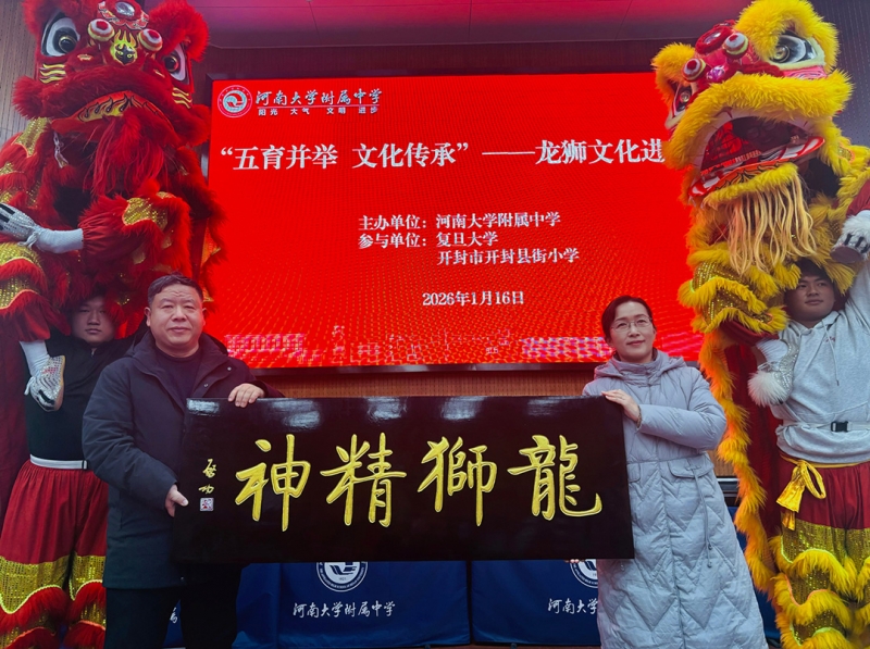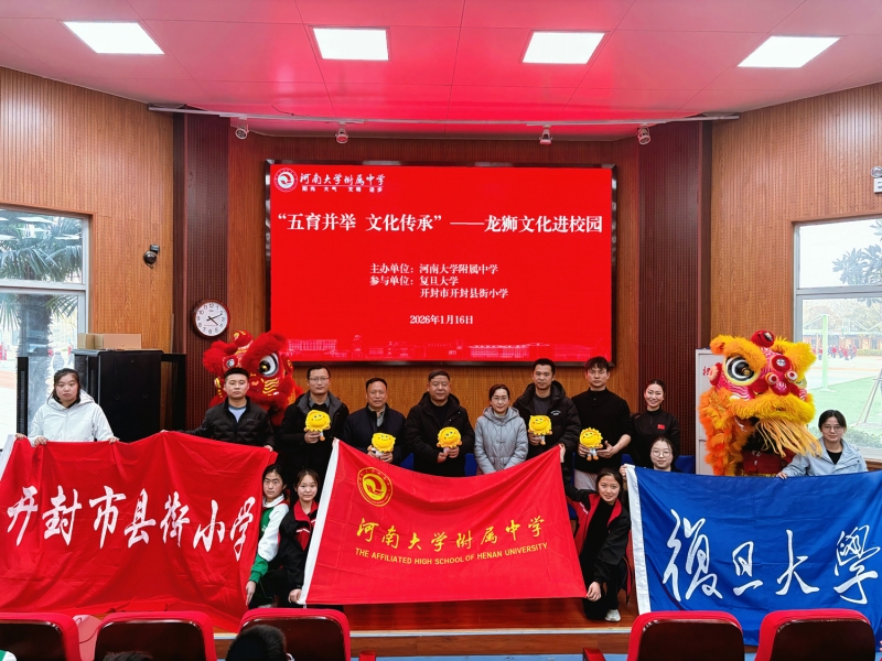 近日,河南大学附属中学成功举办“龙狮文化进校园”主题交流活动,复旦大学龙狮协会、开封市县街小学共同参与。三方以龙狮运动为纽带,构建跨学段、跨院校文化传承与育人平台,推动中华优秀传统文化与“五育并举”理念深度融合。