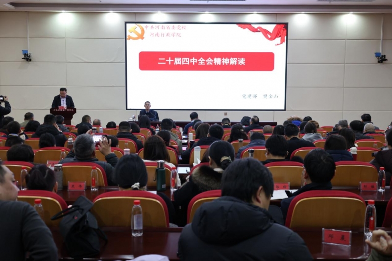 为深入学习贯彻党的二十届四中全会精神,引导学校师生切实把思想和行动统一到全会决策部署上来,1月22日上午,河南轻工职业学院在河南焦裕禄干部学院举办学习贯彻党的二十届四中全会精神报告会,特邀省委党校党的建设教研部樊金山教授作专题报告。校党委副书记、工会主席王延召,校党委委员、副校长魏功,校党委委员、纪委书记陈秋风,鑫苑校区负责人、党政办公室主任代昊出席。全体中层干部,党支部书记及副科级干部参加。报告会由校党委委员、副校长王家桥主持。