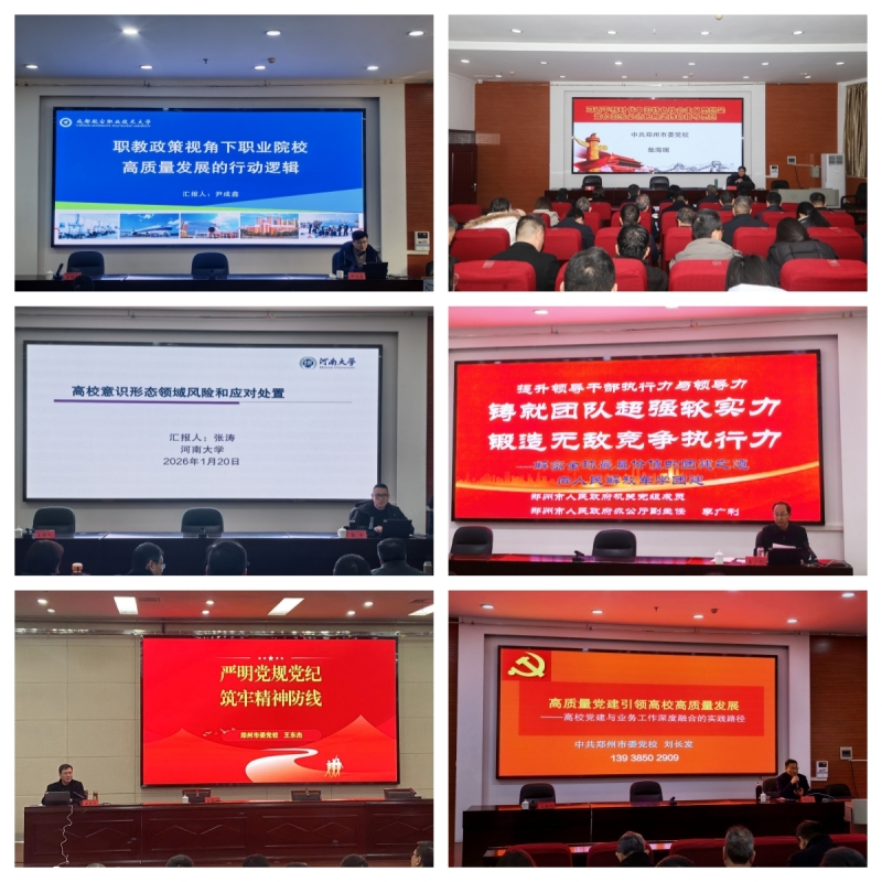 培训期间,培训班邀请了郑州市人民政府办公室、郑州市委党校、河南大学、成都航空职业技术大学等省内外的多领域专家学者,聚焦党的二十届四中全会精神解读、高校意识形态风险防范、党内政治生活准则、党纪学习教育、高校党建业务融合、高职院校高质量发展路径、AI技术教育应用等专题开展授课。授课专家理论功底扎实、案例鲜活生动,讲授内容既有思想深度,又贴近工作实际,为学员夯实了理论根基、拓宽了视野格局,有效提升了干部的综合素养和履职能力。